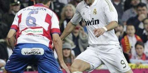 El francés Karim Benzema iluminó al Real Madrid, reenganchado al triunfo a ritmo de goleada en el inicio del 2012, con el atacante como faro en la visita del Granada, que salió excesivamente malparado del estadio blanco, al que regresaba después de 36.