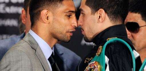 Khan era favorecido en las apuestas, 6-1, e hizo honor a esto al dominar ampliamente los primeros dos as altos con sus rápidas combinaciones. Pero en el tercer round, el ataque de García fue al cuerpo y al área abdominal, logrando que la defensa de Khan bajara.