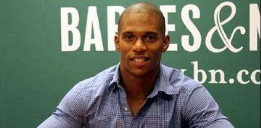 El jugador Víctor Cruz, estrella de los Giants de Nueva York, firmó hoy en esta ciudad ejemplares de su autobiografía ‘Out of the blue’, en la que desvela el duro camino que ha tenido que recorrer, plagado de obstáculos, antes de llegar a lo más alto en el deporte profesional.