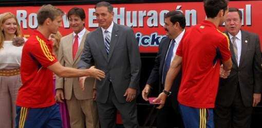 El gobernador Luis Fortuño negó el miércoles que el gobierno de Puerto Rico haya desembolsado 2.3 millones de euros a la delegación española de fútbol La Roja por el partido amistoso programado para el miércoles.
