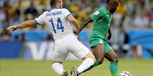 Grecia, gracias a un penalti convertido por Giorgios Samaras, en el minuto 93, derrotó a Costa de Marfil y se clasificó a los octavos de final del Mundial de Brasil por primera vez en su historia.