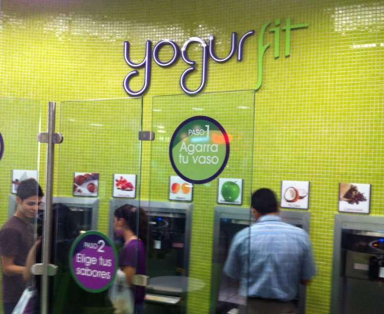 Yogurfit trae un concepto nuevo en el mercado de los helados y los yogures helados ya tiene una especie de bar de sabores donde el propio cliente se sirve los sabores y cantidades que desea y al final paga por peso, a 0.63 centavos la onza. La oferta incluye yogures y sorbetes de sabores como coco, piña, limón, granada, avellana, café y el sabor especial que es «plain» con una receta de la casa.