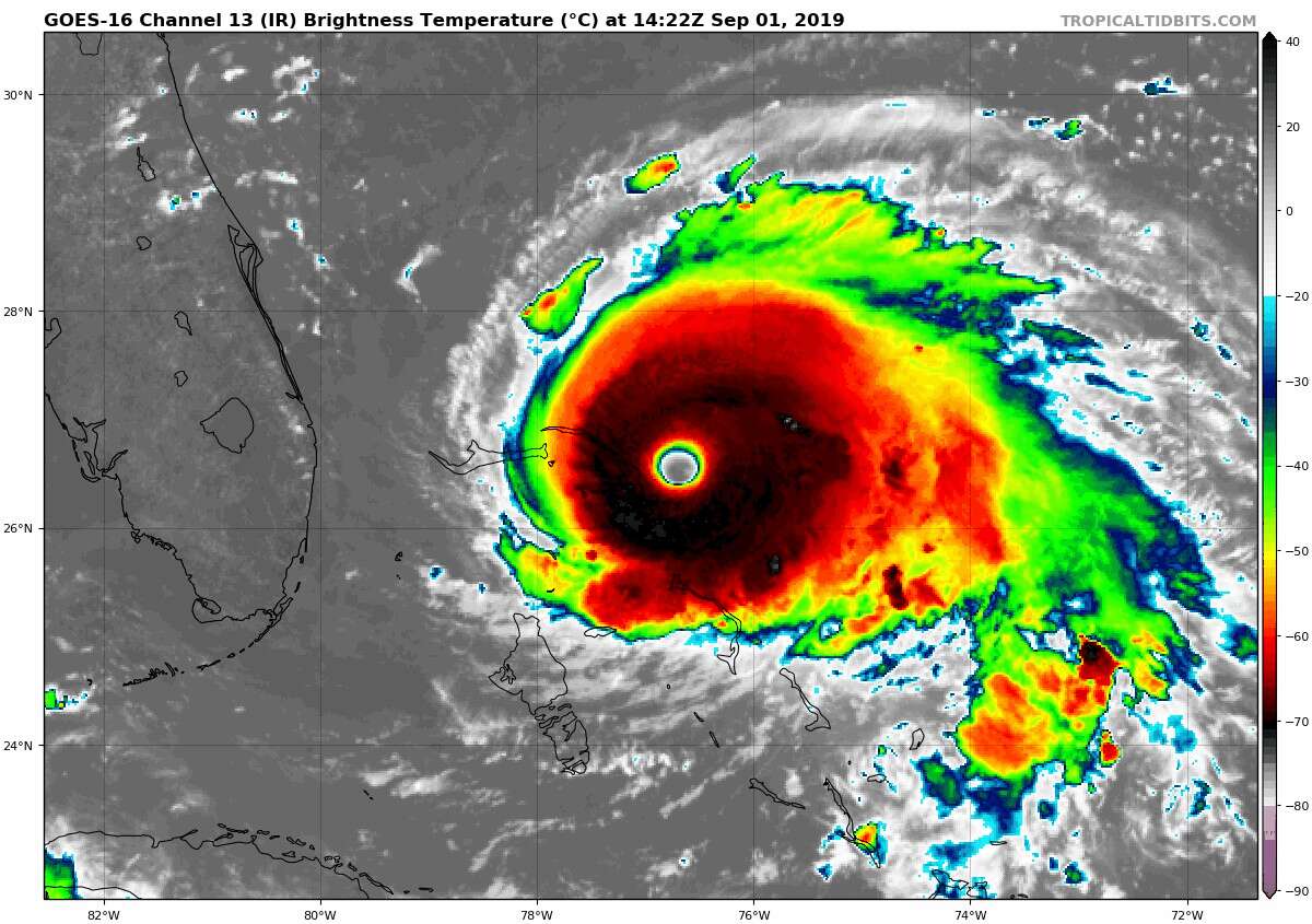 El huracán Dorian cobró fuerza monumentalmente en la madrugada y sus vientos ahora lo colocan como el más potente ciclón en la historia reciente del Atlántico.