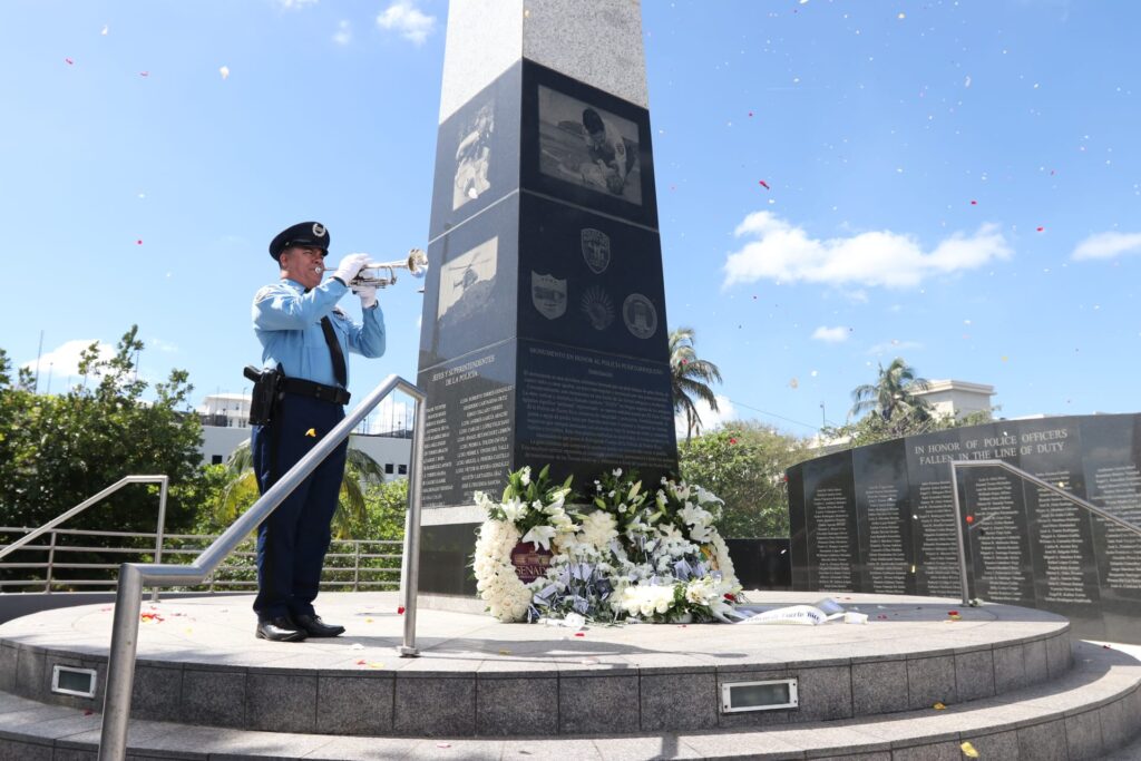 La Plaza en Honor a la Policía de Puerto Rico cerca al Capitolio, conserva los nombres de los oficiales que perdieron sus respectivas vidas en el cumplimiento del deber.