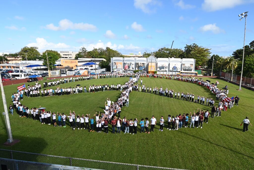 Los participantes se unieron en un círculo de paz viviente en el parque de pelota del Residencial Ernesto Ramos Antonini, un esfuerzo conjunto para prevenir la violencia escolar y fortalecer el bienestar de la niñez y sus familias.