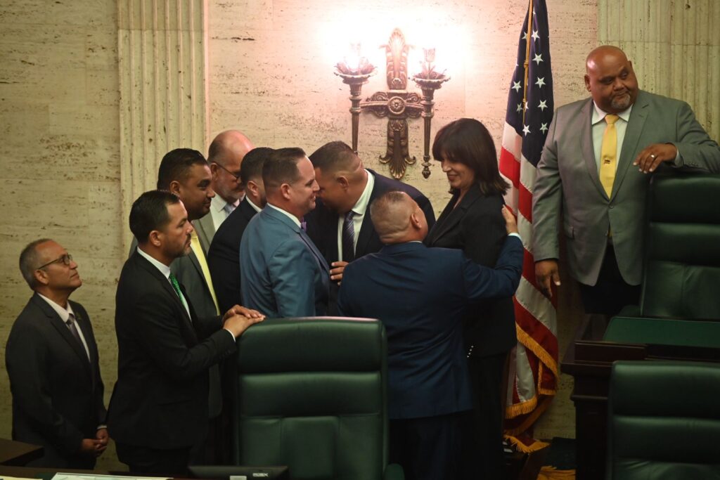 Los representantes se acercaron a la nueva Contralora después de la votación (Juan Costa / NotiCel).