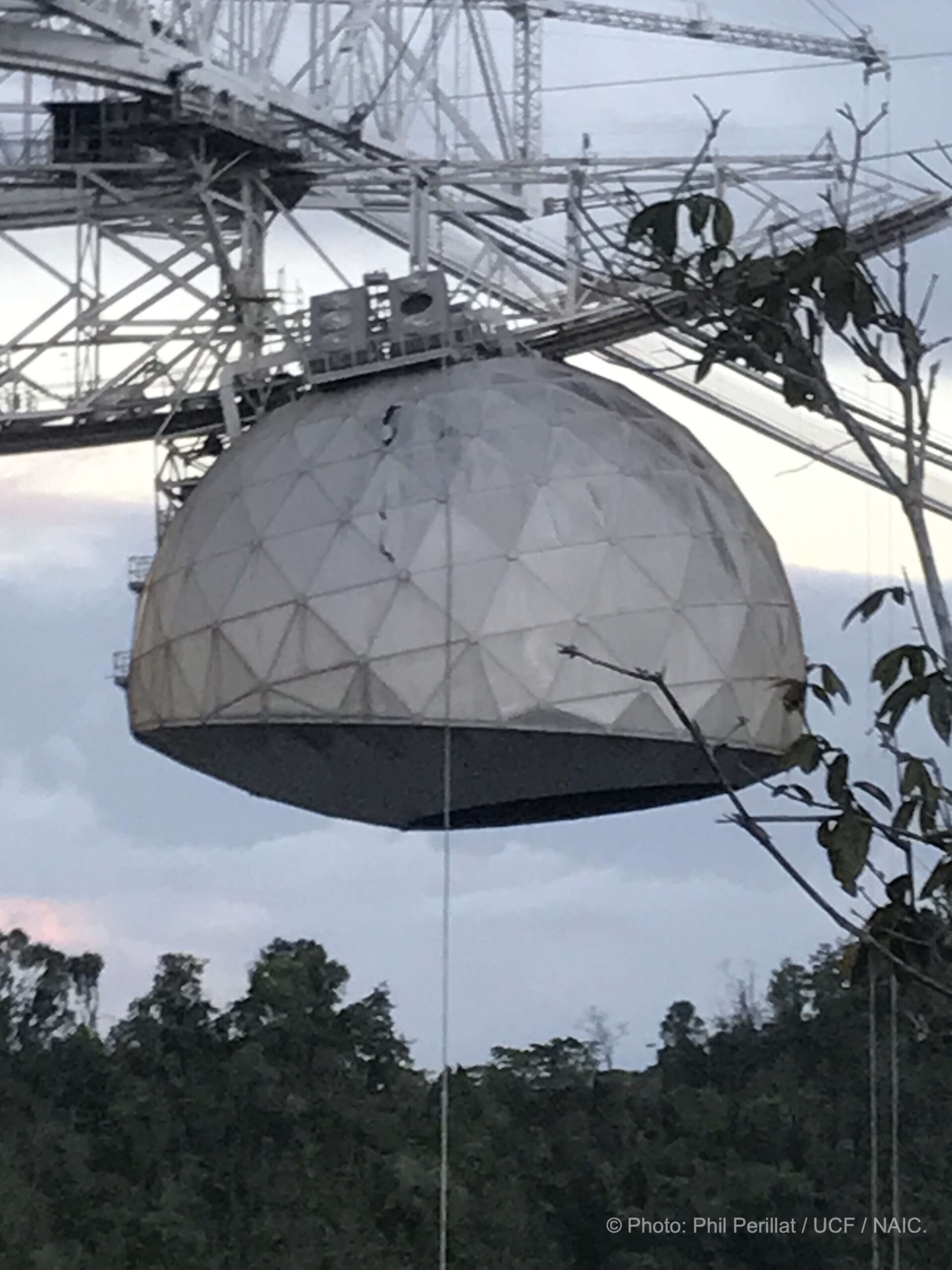 Tanto el plato como la antena receptora sufrieron el impacto directo de un cable de soporte de tres pulgadas de ancho que se quebró la madrugada del lunes.
