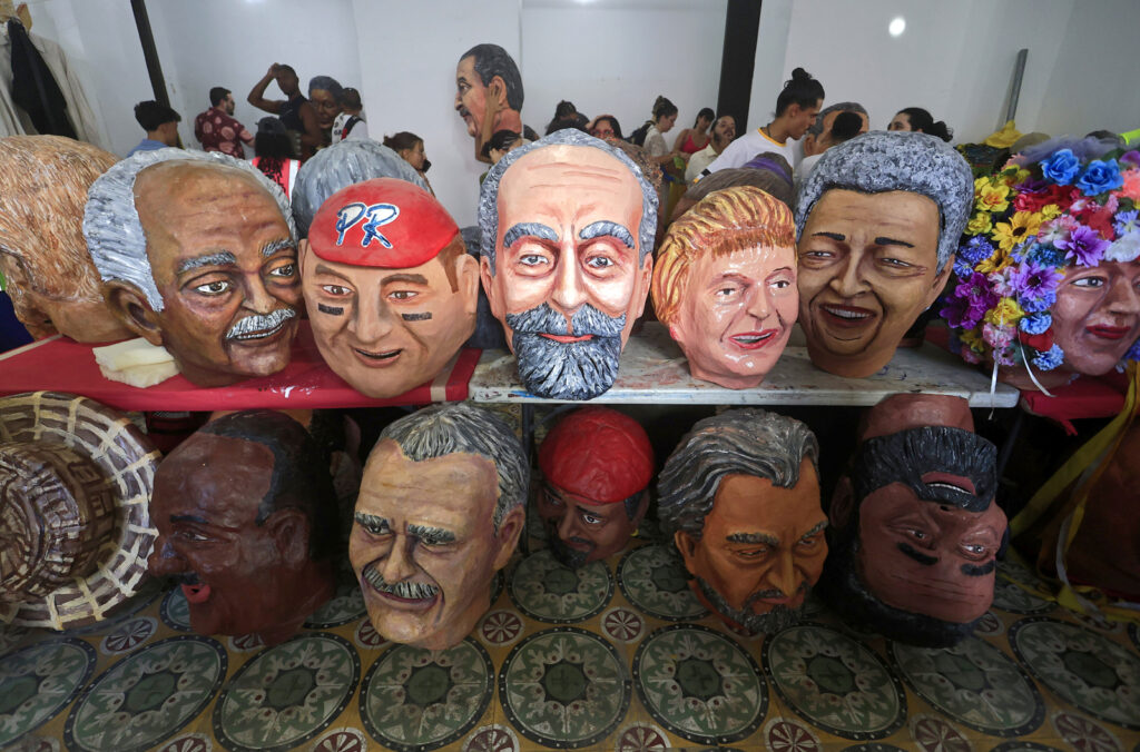 Iconos indiscutibles de las Fiestas de la Calle San Sebastián, los cabezudos desfilan por el Viejo San Juan al ritmo de los panderos de plena.