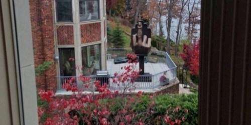 Un hombre en Michigan, quien es vecino de su exesposa, instaló en el patio trasero una estatua de bronce de una mano ‘sacando el dedo’ en dirección hacia la casa de su exesposa.