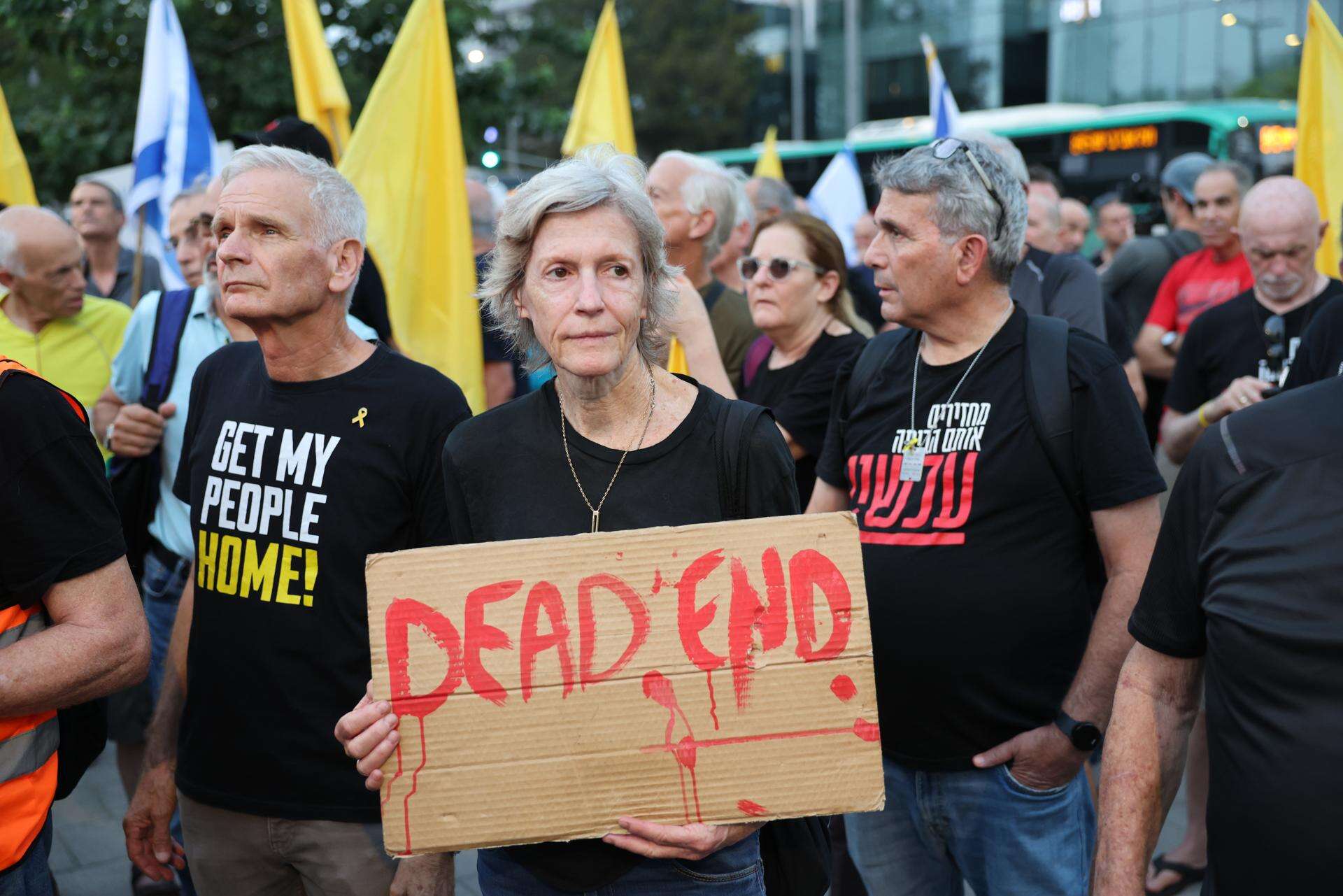 «El 7 de octubre fue una masacre y al inicio de la guerra era necesario responder con fuerza. Pero toda guerra debe conducir a un acuerdo, y creemos que ese momento ha llegado. Mantener nuestra seguridad exige otras vías», señala a EFE Barlev.Barlev teme que prolongar la ofensiva provoque más víctimas inocentes. «Tenemos valores, y matar civiles no forma parte de ellos», afirma.Para él y para otros manifestantes, este conflicto «ya no es una cuestión de seguridad».»Ningún Ejército ha logrado jamás proteger a los civiles solo con la fuerza», subraya Ganelevin. «La única manera de poder decir que estamos seguros es la paz», añade.Tras el anuncio del primer ministro israelí, Benjamín Netanyahu, el pasado jueves, de que su objetivo es conquistar por completo la Franja de Gaza, las protestas contra la gestión de su Gobierno se han multiplicado y ya se organizan a diario en todo el país.