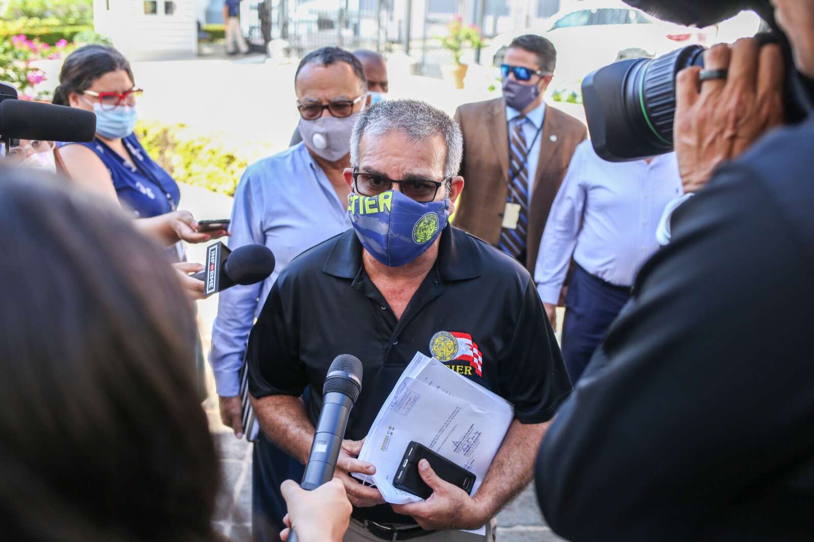 Figueroa Jaramillo llegó acompañado de parte de los integrantes de la Alianza de empleados activos y jubilados de la Autoridad de Energía Eléctrica (AEE).