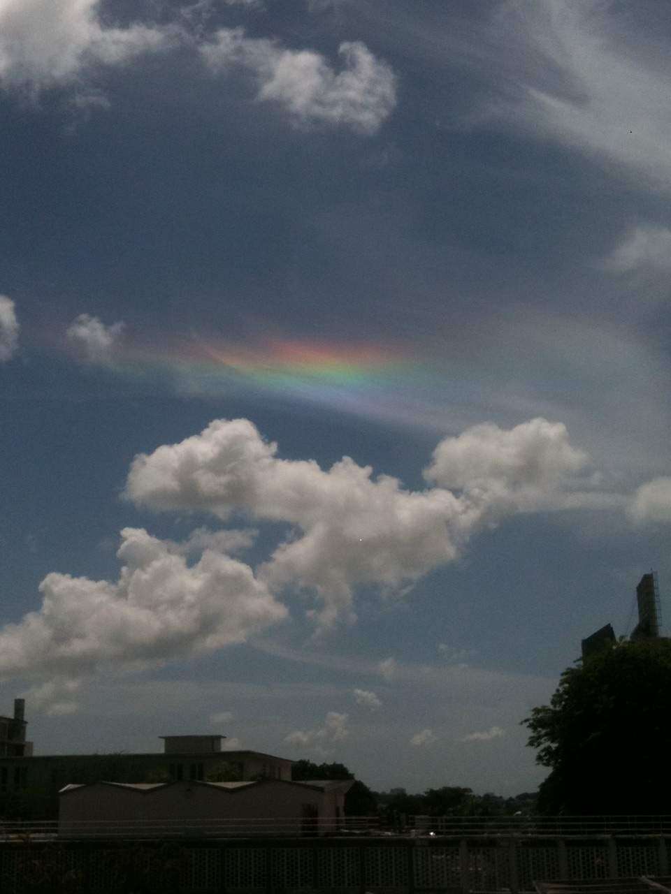 En la tarde de ayer ocurrió un fenómeno curioso en el cielo del que se percataron los amantes de la astronomía y algunos profanos curiosos. Se trató de un efecto óptico ocasionado por refracción de luz solar a través de nubes altas que contienen pequeñas partículas de hielo. Parecía como su hubiera nubes con flecos de arcoíris y se pudo observar en diferentes puntos de la isla.