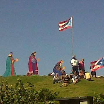 El Movimiento Independentista Nacional Hostosiano (MINH) erigió la sábado las figuras de los Tres Santos Reyes al tope de la Lomita de los Vientos, frente al Capitolio, como acto de defensa del patrimonio nacional y el derecho a la libertad de expresión luego de la Cámara de Representantes cediera los terrenos al Servicio Nacional de Parques, agencia federal que administra el Fuerte de San Cristóbal.