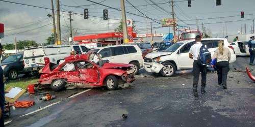 Como resultado del choque, el vehículo que conducía por el lado derecho del Mitsubishi Mirage, el cual era una guagua Toyota Highlander, color blanca, conducida por Johanna Viruet López, de 42 años, vecina de Toa Alta, impactó la parte posterior a la conductora del Mitsubishi, resultado la conductora con heridas leves.