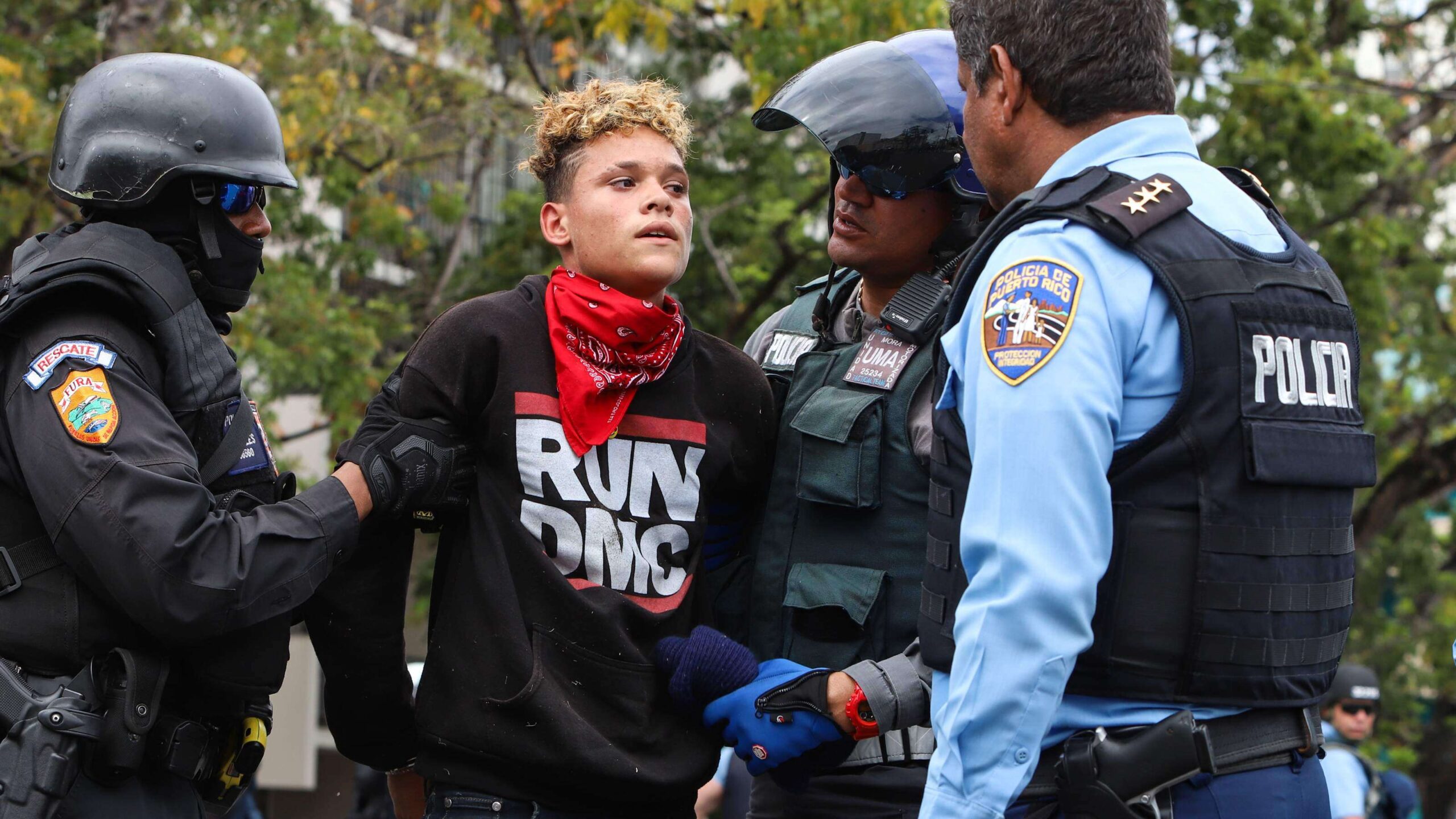 Los cargos que pesaban contra el joven consistían de uso de fuerza o violencia contra un funcionario público, el uso de una máscara para cometer un delito grave, y el uso de una piedra para agredir a un policía.