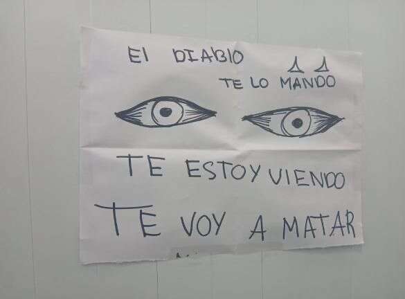 La primera amenaza se encontró el pasado lunes, 4 de noviembre, cuando en horas de la tarde estudiantes encontraron una carta que decía: «El Diablo te lo mando, te estoy viendo, te voy a matar».