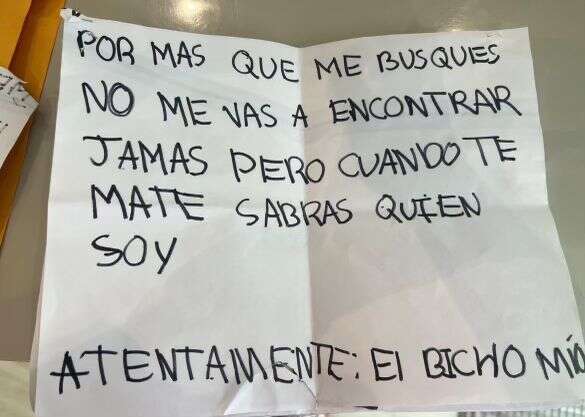 Las misivas que se encontraron a principios de la semana pasada decían «El Diablo te lo mando, te estoy viendo, te voy a matar» y «Esto va a ser como los Estados Unidos, tiroteo en las escuelas …».