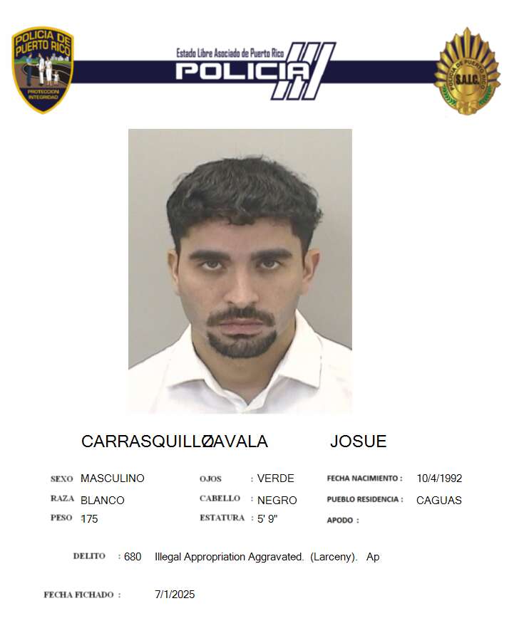 Agentes de la División de Investigaciones de Robo y Fraude a Instituciones Bancarias, Financieras y Cooperativas del Negociado de la Policía realizaron una investigación que culminó en cargos por fraude, apropiación ilegal de identidad y apropiación ilegal agravada, del Código Penal de Puerto Rico, a Josué Carrasquillo Zabala, de 32 años y vecino de Caguas.