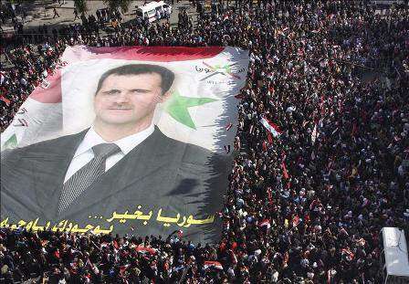 Damasco – Miles de sirios tomaron hoy la céntrica plaza de Hijaz en Damasco para mostrar su apoyo al régimen del presidente, Bachar al Asad, y para protestar en contra de la decisión de la Liga Árabe de suspender a Siria como miembro de la organización.
