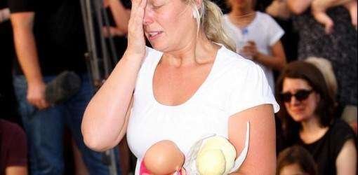 Cientos de personas se acercaron para expresar sus condolencias a la familia de Lillie, Jackson y Willsher Weekes, cuyos cadáveres reposaban en tres féretros rosa, azul y morado, sus colores favoritos, y adornados con flores y sus juguetes.