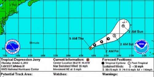La tormenta ‘Jerry’ se convirtió hoy en depresión tropical al oeste-suroeste de las Azores, en la cuenca atlántica, y se espera que se convierta en un ‘remanente de baja presión’ el fin de semana, informó el Centro Nacional de Huracanes (CNH) de EEUU.