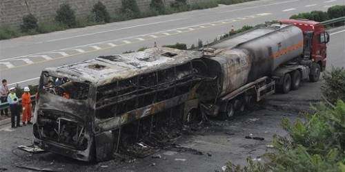 Según las investigaciones preliminares, los siniestros comenzaron con el vuelco de un autobús en la autopista Baotou-Maoming.