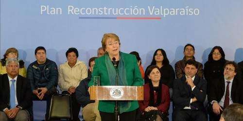 La presidenta de Chile, Michelle Bachelet, anunció este miercoles un plan dotado de 510 millones de dólares para reconstruir los sectores afectados por el devastador incendio que afectó la ciudad de Valparaíso en abril pasado.