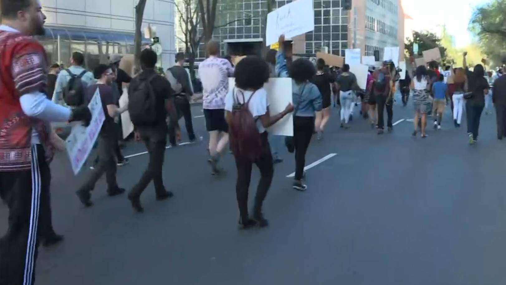 ‘El asesinato de negros por la policía es un nuevo linchamiento’ o ‘El linchamiento debe acabar’ fueron algunos de los mensajes que los activistas mostraron en sus pancartas mientras caminaron por las calles de Sacramento vigilados por un fuerte dispositivo de seguridad, según mostraron televisiones locales.