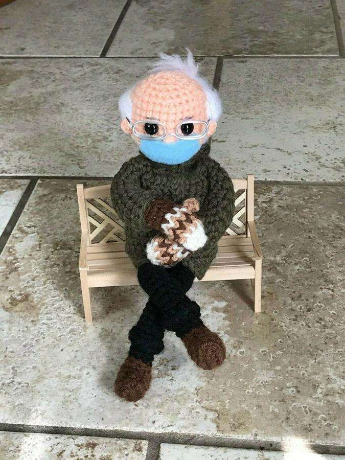 La creadora del muñeco de croché, Tobey King, se inspiró en la imagen del senador y exaspirante presidencial Bernie Sanders sentado durante la investidura del presidente Joe Biden el pasado día 20 con su gruesa chaqueta, el pelo alborotado y con unas mullidas manoplas tejidas por una maestra de su estado que se han convertido en la comidilla de las redes sociales.