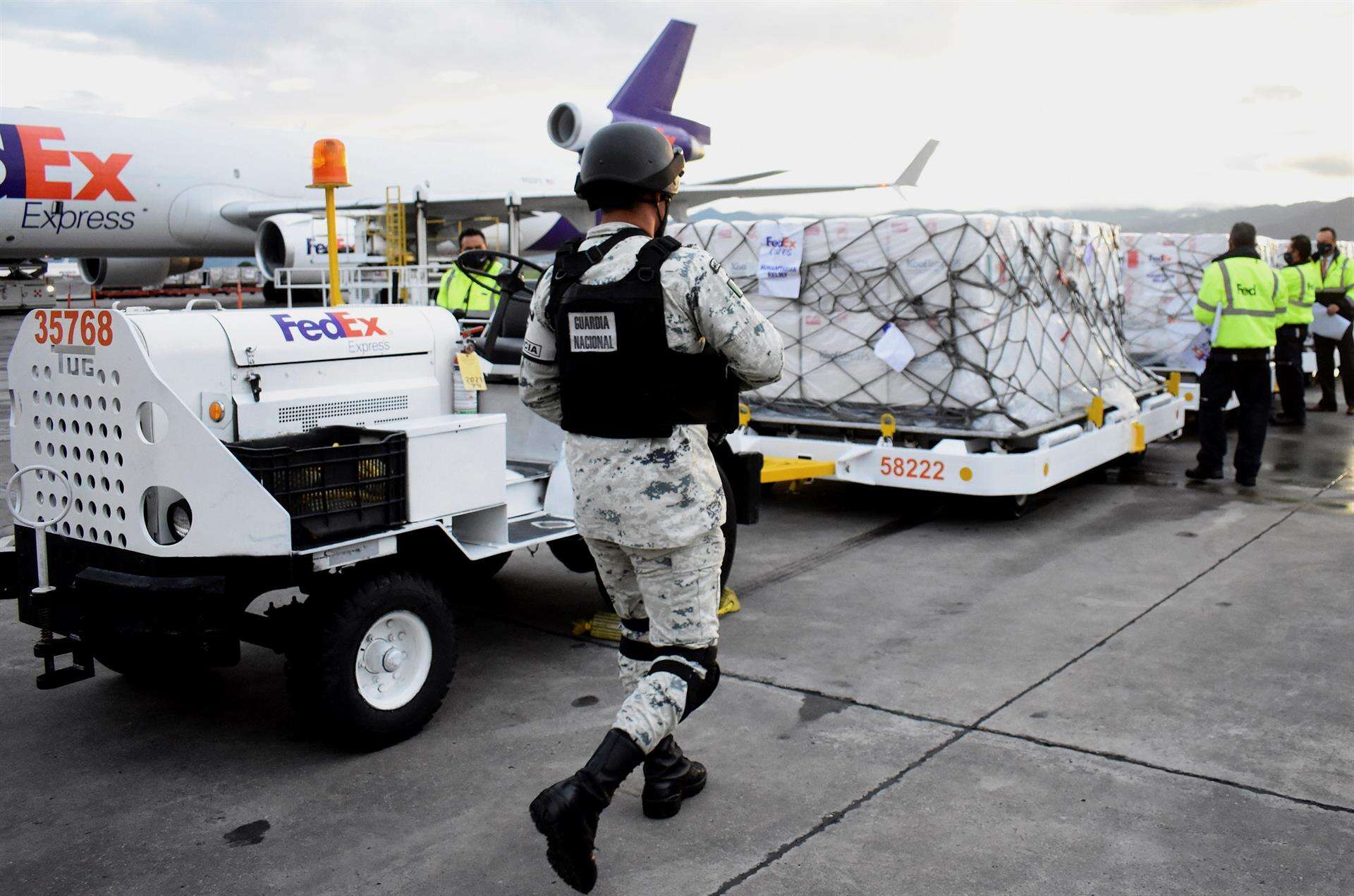El cargamento de Janssen, fármaco de una sola dosis fabricado por la farmacéutica estadounidense Johnson y Johnson, aterrizaron este martes en el aeropuerto de Toluca, a las afueras de Ciudad de México, y fueron enviadas al norte para arrancar la inmunización.