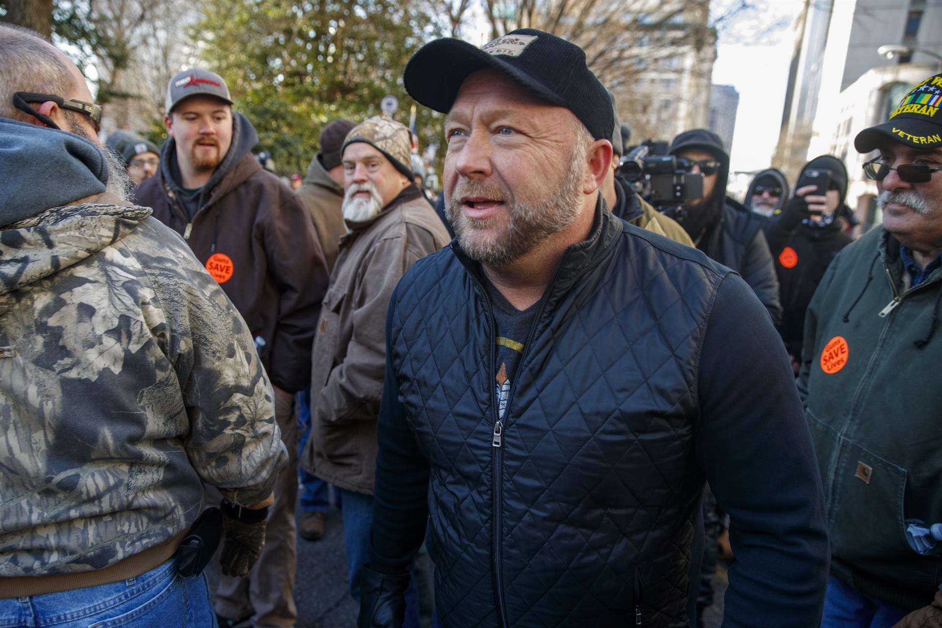 Desde su pódcast InfoWars, Jones se pasó años difundiendo la teoría de que el tiroteo en la escuela Sandy Hook, de Newtown (Connecticut), fue una «farsa», ante lo que varias de las familias de las víctimas lo demandaron.