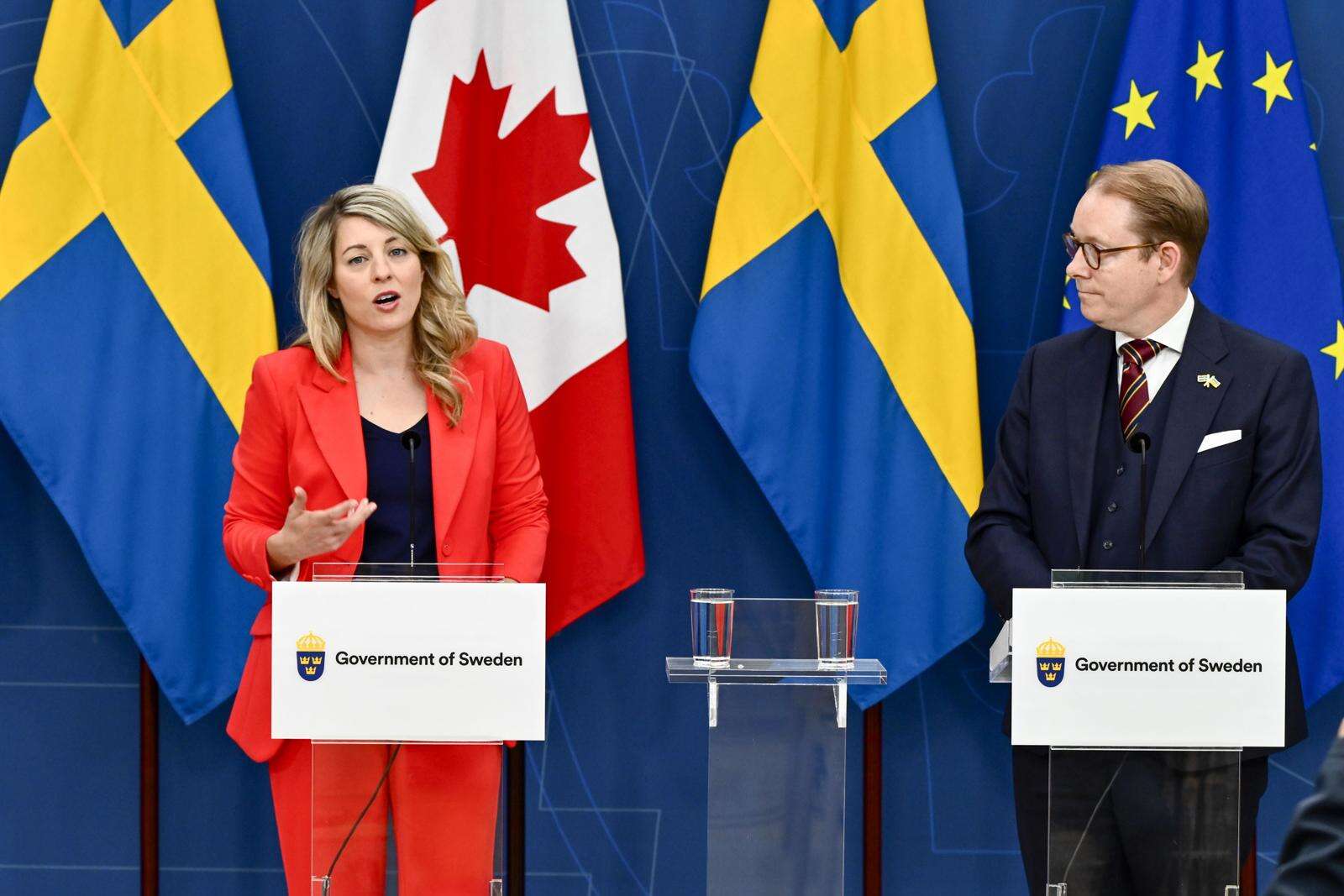 Joly, en una rueda de prensa junto con su homólogo sueco, Tobias Billström, en Estocolmo, declaró que no hay «ninguna condición sobre el usuario final a los envíos de armas a Ucrania» que lleva a cabo Canadá.