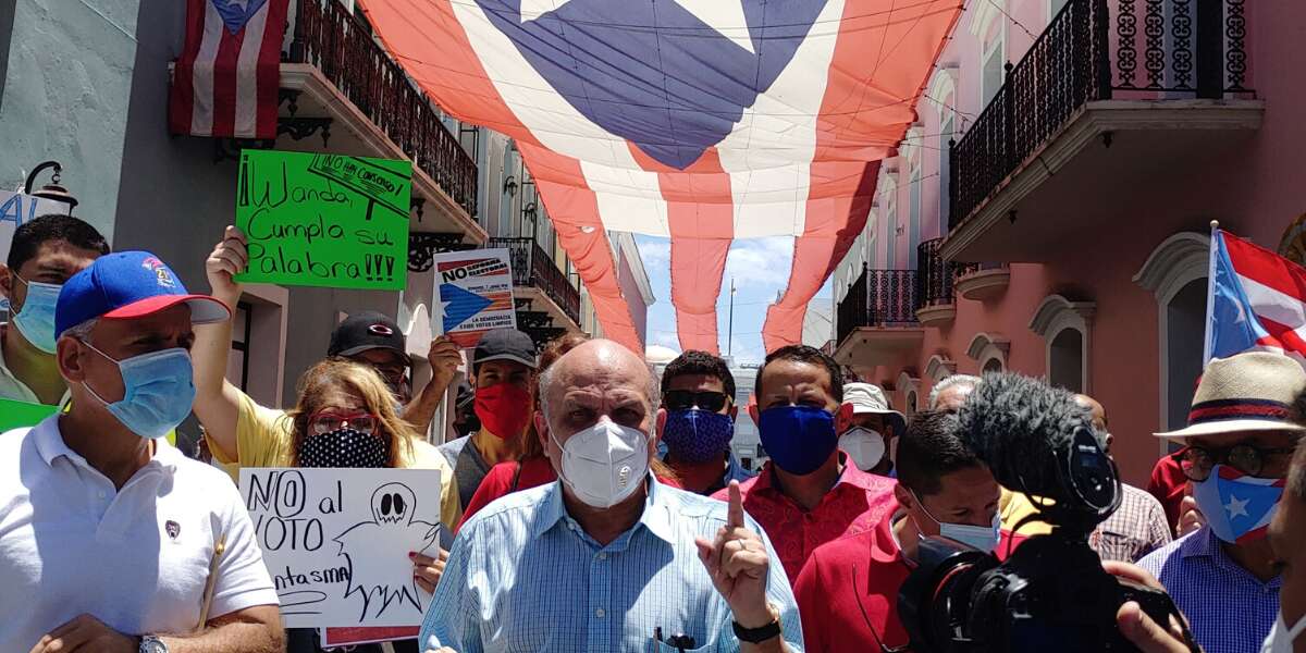 El excomisionado electoral del Partido Popular Democrático (PPD), Héctor Luis Acevedo, realizó una protesta pacífica frente a La Fortaleza para exigirle a la gobernadora Wanda Vázquez que no firme el proyecto del Código Electoral.