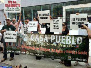 Un grupo de puertorriqueños y niuyorquinos se manifestaron hoy frente a la oficina del Cuerpo de Ingenieros en Manhattan, Nueva York, para reclamar que se deniegue el permiso para la construcción del propuesto gasoducto ‘Vía Verde’ en Puerto Rico.
