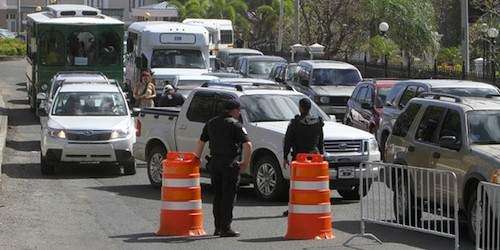 El plan contemplaba el registro de las personas usando paletas electrónicas así como el registro de bolsas y mochilas. El miércoles, el municipio puso vallas en las calles como parte del proceso de instalar los 10 puntos de cotejo.