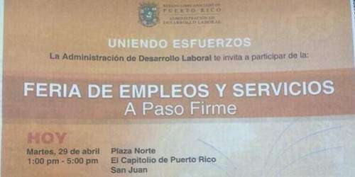 El Capitolio de Puerto Rico no sólo será el escenario hoy de lo que es considerado el Mensaje de Estado y Presupuesto más importante de los últimos años. La Casa de las Leyes, o más bien su Plaza Norte, será tambien el lugar donde se celebre esta tarde una feria de empleo convocada por la Administración de Desarrollo Laboral, según un anuncio de página completa que salió en un rotativo.