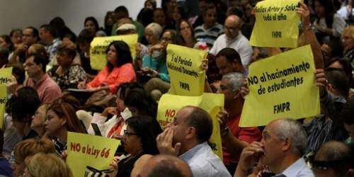 En medio del foro que celebra el Departamento de Educación (DE), varios miembros de la Federación de Maestros (FMPR) se expresaron en contra del hacinamiento de las escuelas, de la implantación de la Ley Especial de Sostenibilidad Fiscal y Operacional del Gobierno, y de la eliminación de los cursos de bellas artes y de salud.