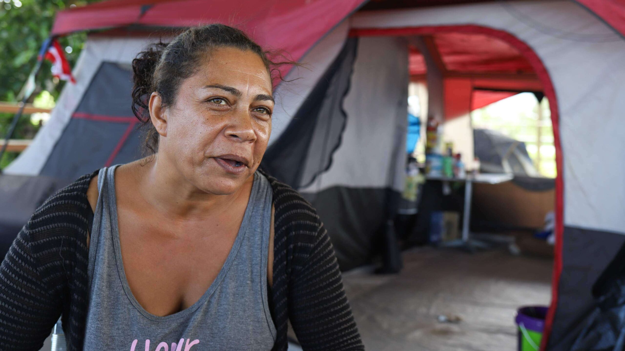 ‘Venir aquí, es la primera vez que vivo en una carpa por mucho tiempo, con mis nietos, con bebes. No es fácil, yo me quiero ir, yo me quiero ir de aquí y solo estoy esperando la casa porque ya yo tengo todo’, afirmó la madre y abuela.