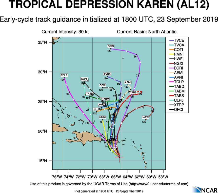 Karen se mantiene como una depresión tropical y no se prevee intensificación antes de llegar a Puerto Rico. Sin embargo, se espera que al salir de la isla pueda volver a ser una tormenta. De otro lado, el evento de lluvias podría extenderse durante todo el día del martes hasta la mañana del miércoles.