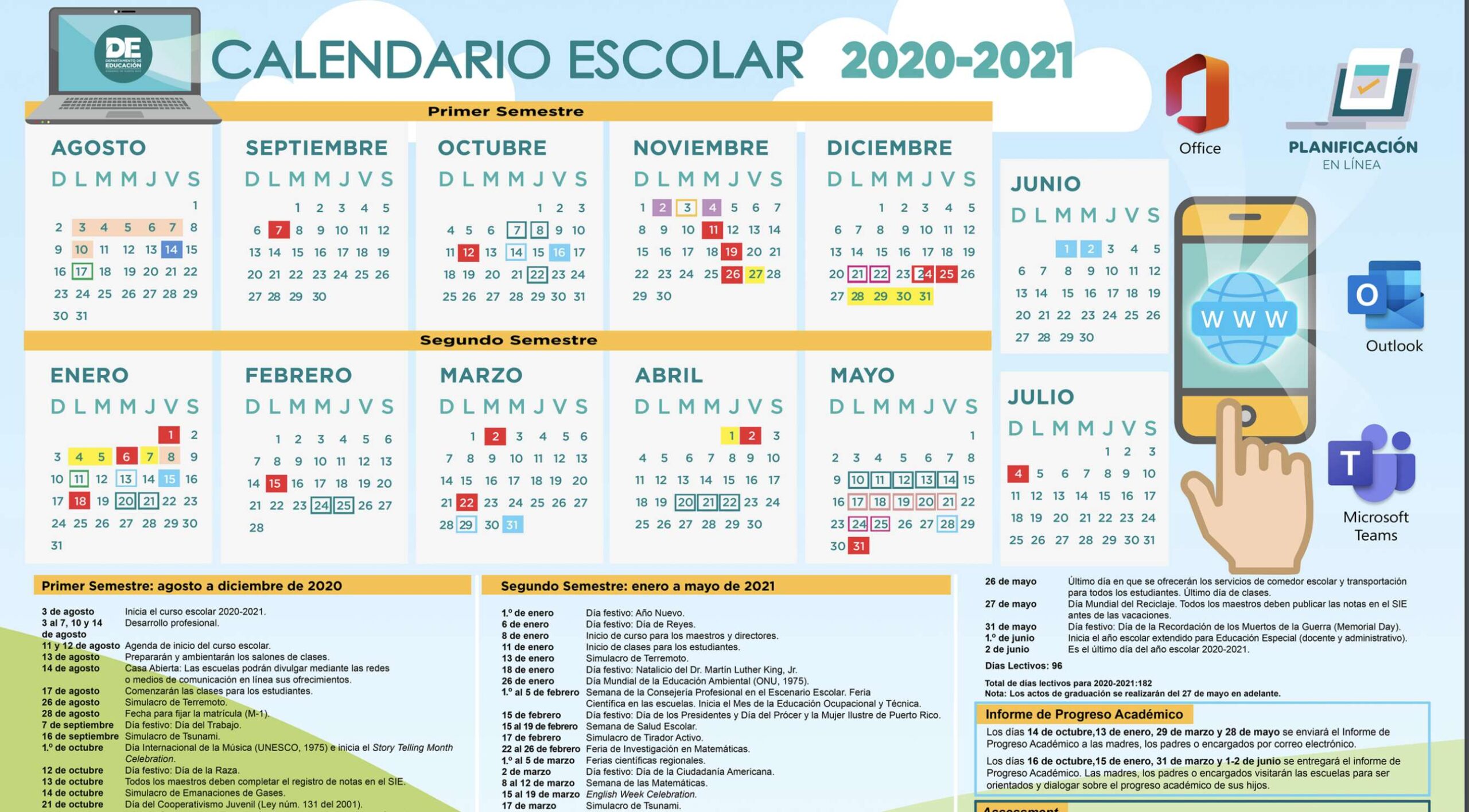 El calendario será impreso y distribuido a las escuelas y, como de costumbre, está disponible en la página web del DE y directamente en el enlace: http://de.pr.gov/calendario/ . Para descargarlo, los padres o encargados deben presionar la imagen. También será publicado en las redes sociales de la agencia para mayor alcance y difusión.
