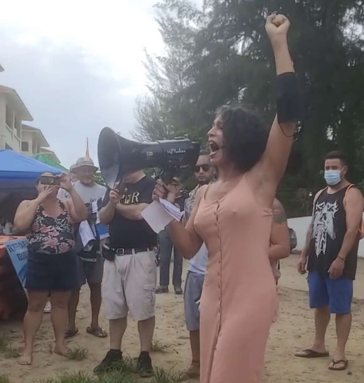 Sin embargo, la imputada regresó horas más tarde a la playa Los Almendros y, a través de un megáfono, se dirigió a los policías que la detuvieron.