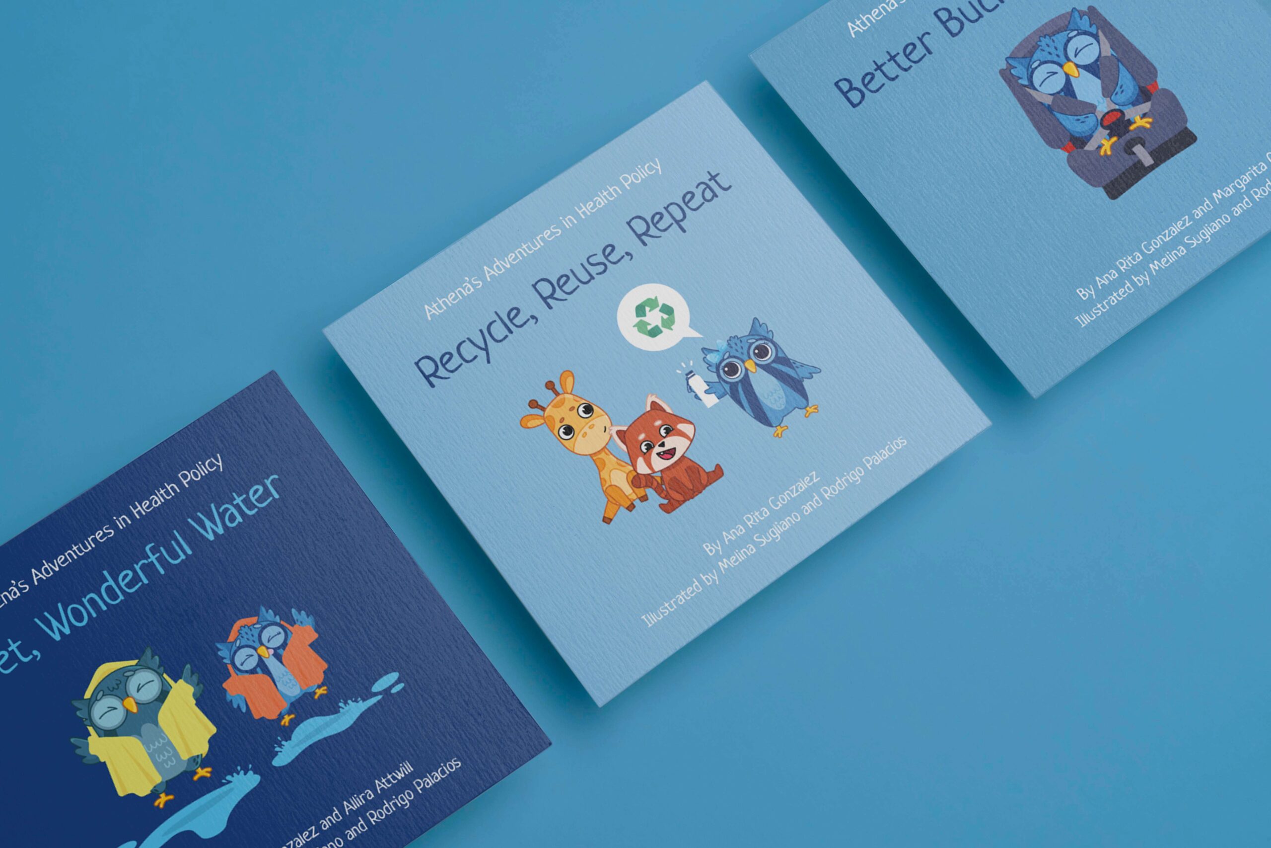 El primer libro lanzado se titula «Wet, Wonderful Water» y trata de que un búho llamado Athena que quiere saber todo sobre el agua. ¿De dónde viene? ¿Cómo llega a nuestras casas? y si ¿Puede beber agua de un charco en la calle?