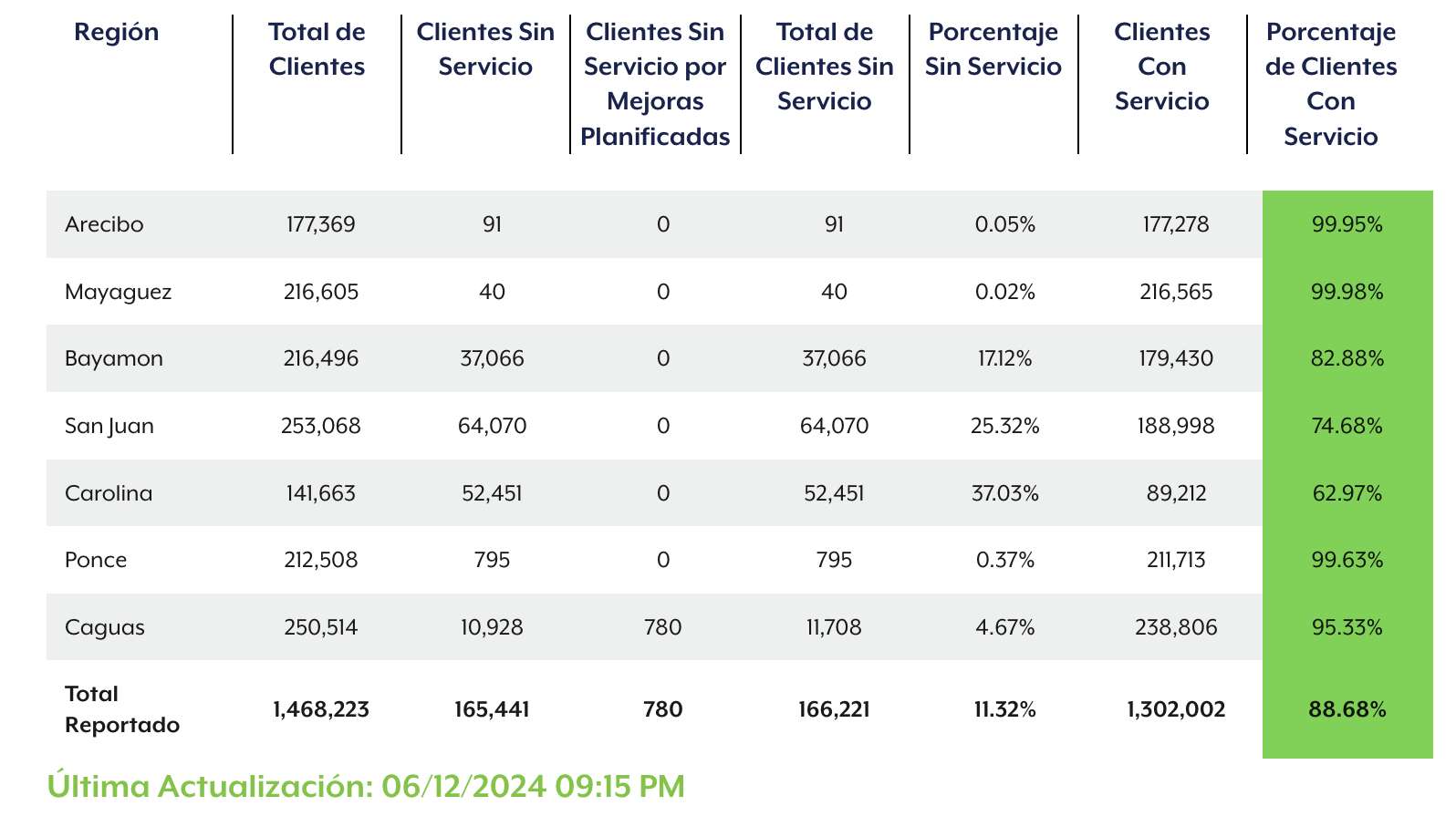 A las 5:30 p.m. unos 134,188 clientes continuaban sin el servicio, y a las 9:00 de la noche, cuando ya se reportada que solo habían unos 44 mil abonados sin servicio, se produjo el nuevo apagón que esta vez impactó 165 mil.