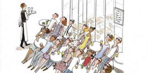 ‘Rápido, han anunciado 7 minutos de sol!’, reza en francés e inglés una viñeta que muestra un nutrido grupo de personas ansiosas de rayos solares en la terraza de un bar, una actitud que no le resulta extraña a nadie que haya pasado cierto tiempo en la capital francesa.