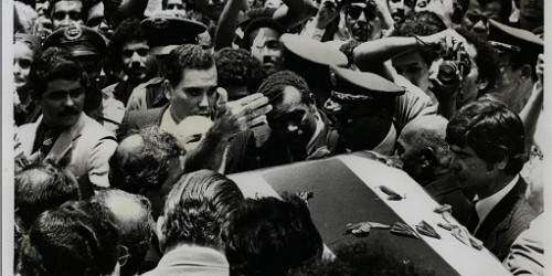 El 2 de mayo de 1980, el público se abrió hueco a codazos frente al mausoleo de Barranquitas para despedir a quien fuera apodado ‘el último prócer’ de Puerto Rico, Luis Muñoz Marín. La exaltación de la multitud aumentó desproporcionadamente según caía la noche, y se tenía conocimiento de la cercanía del cortejo fúnebre. Cuando la comitiva finalmente llegó, un grito femenino suspendió el tumulto y abrió paso entre la gente para posibilitar la entrada del feretro: ‘Compatriotas, dejennos enterrar a Muñoz en paz’.