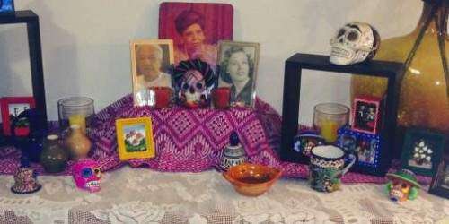 ‘El altar de muertos es el espacio dónde ocurre la transición. Se colocan fotos de los fallecidos así como pertenencias y hasta platos de comida preferidos de los fallecidos’, nos comentó Ávila, mexicano que reside en la Isla hace 27 años.