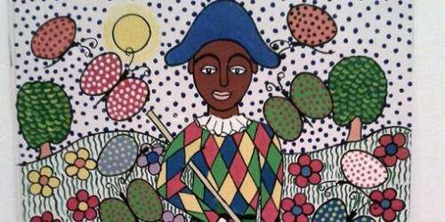 A otros personajes universales, como el arlequín, procedente de la Commedia dell’Arte, o al bufón, Zúñiga Batista los retrata de una forma transgresora, pues los pinta con piel negra.