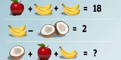 Con el valor de la manzana, el cual se puede deducir que es 10 por el primer ejercicio matemático, se puede llegar a descifrar el resto. Pero recuerda estar atento a la cantidad de frutas en casa ejercicio.