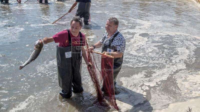 Todos ellos vieron cómo lubinas, doradas, lenguados, camarones y langostinos crecen en los esteros y, red en mano, se sumergieron en ellos para participar en un despesque.