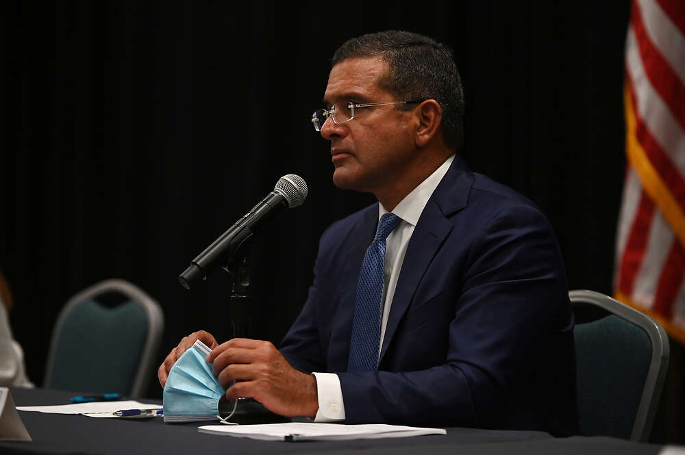 El gobernador de Puerto Rico, Pedro R. Pierluisi Urrutia se reúne con los directores ejecutivos de la Oficina Central de Recuperación-Reconstrucción y Resiliencia (COR3), por sus siglas en inglés) y la Autoridad de Asesoría Financiera y Agencia Fiscal (AAFAF), Manuel Laboy y Omar Marrero, respectivamente.